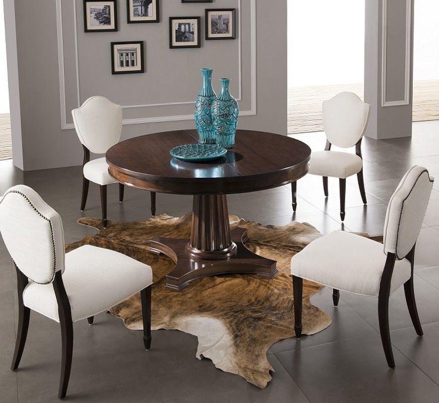 Стиль неоклассика прекрасно смотрится в современном интерьере просторных столовых и гостиных. Элегантный круглый стол в цвете вишни Cherry C, выполнен из массива дерева и прочного уплотненного МДФ. Мы дополнили этой моделью свою коллекцию Mestre, предлагая клиентам красоту и качество в одном изделии.