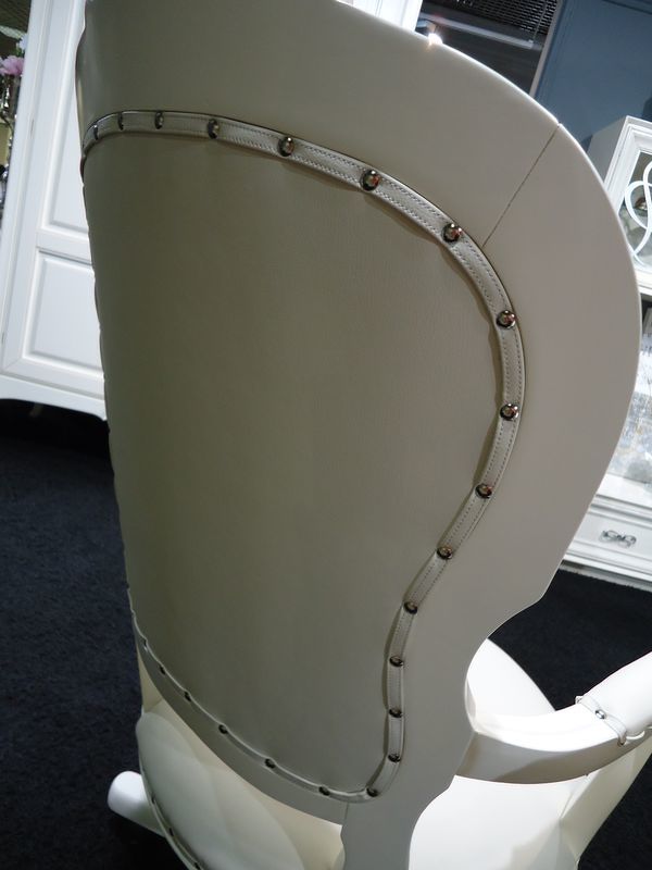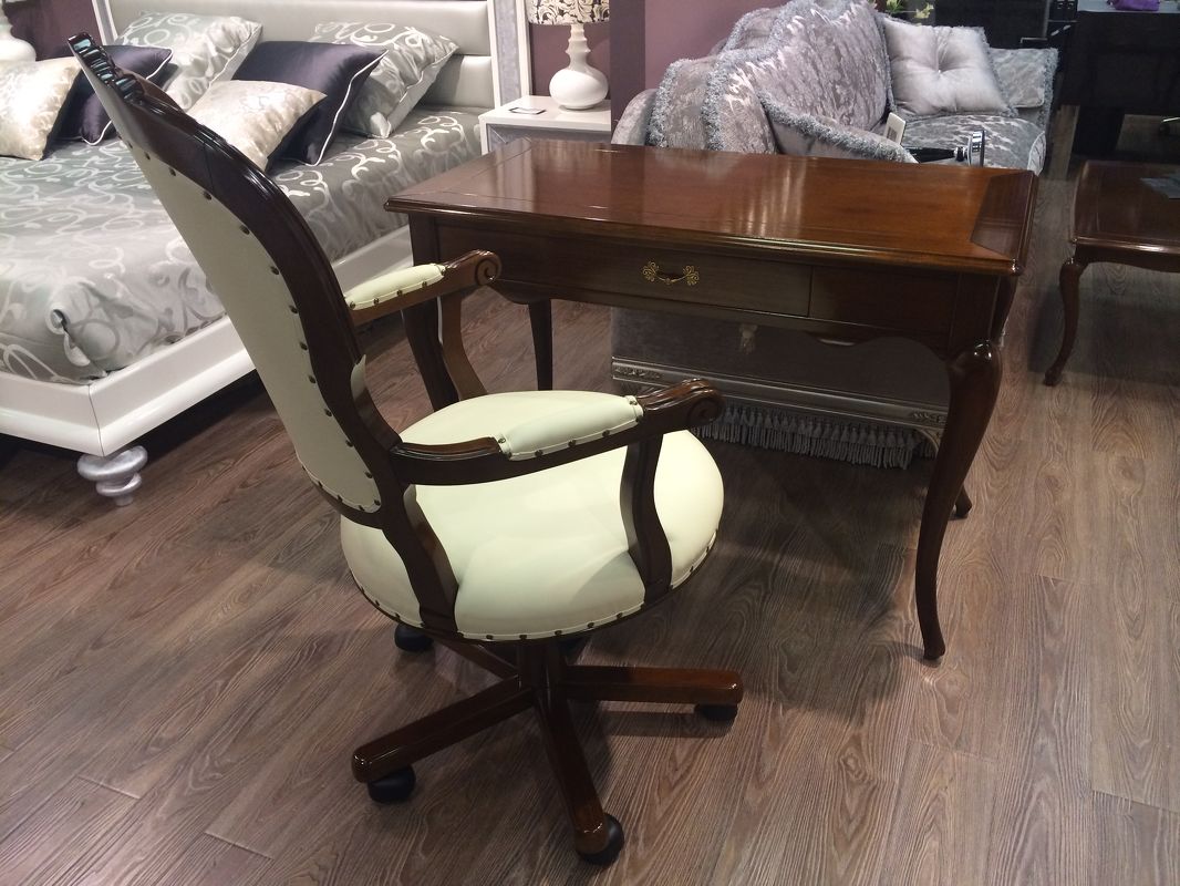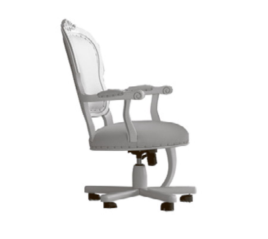 Рабочее кресло с высокой спинкой выполнено в классическом стиле. Опирается на базу на колесиках с функцией изменения высоты.