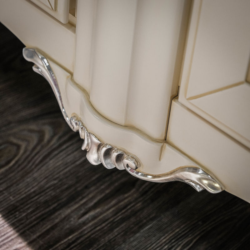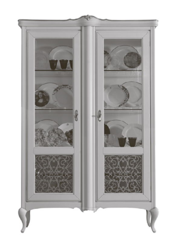 Витрина, отделка кремовый полуматовый лак, вставки и ручки серебро