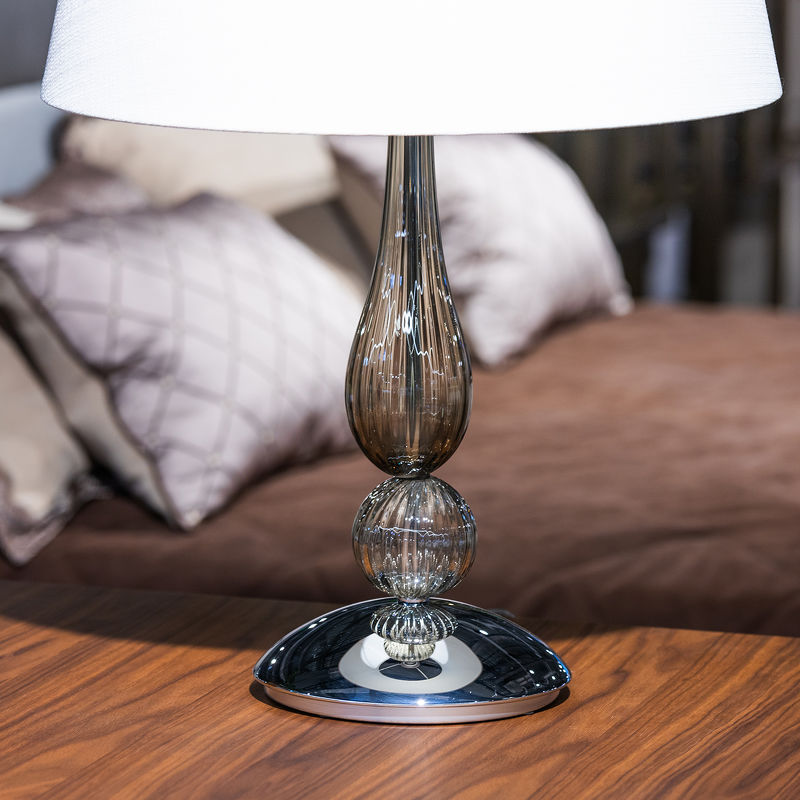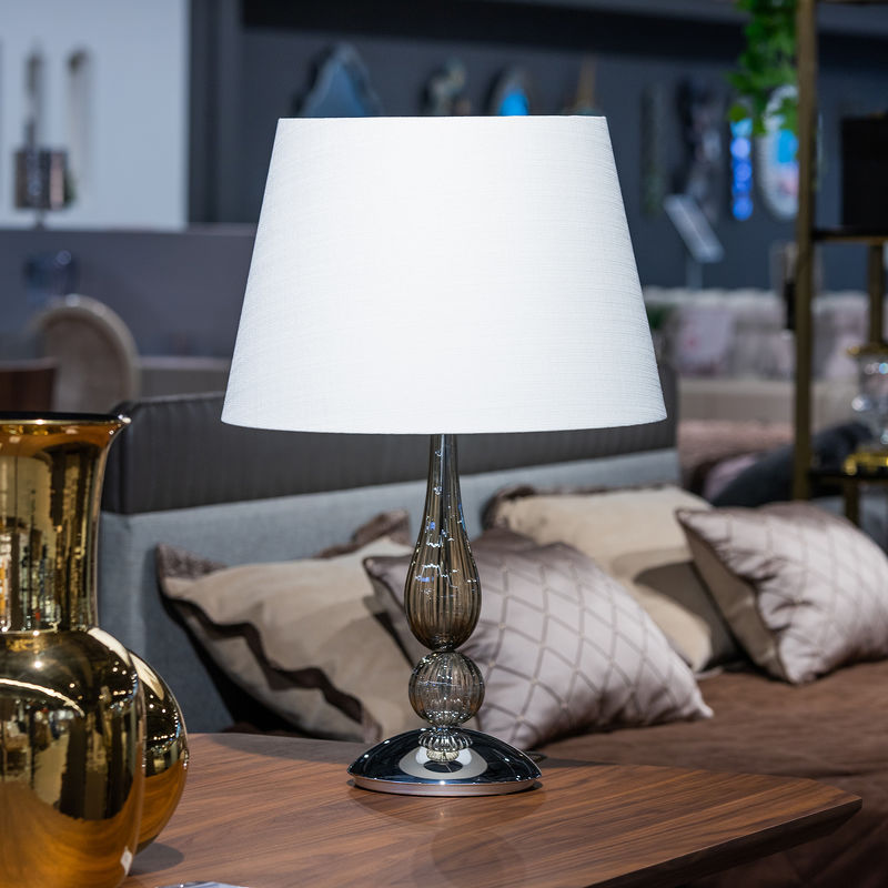 Настольная лампа СНЯТО С ПРОИЗВОДСТВА, отделка хром, дымчатое стекло, белый абажур