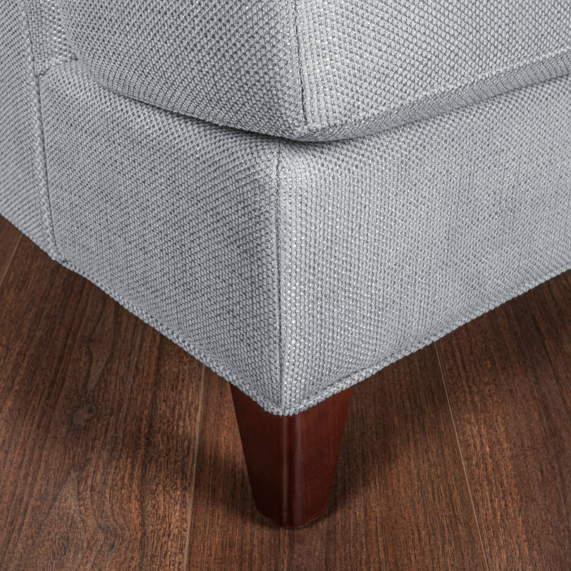 Кресло, отделка шпон махагона C, ткань серо-голубая рогожка