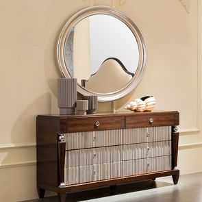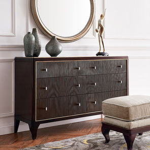 Выполнен из массива дерева и высококачественного МДФ класса Е1. Цвет фурнитуры - хром. Дно ящиков декорировано черной бархатной тканью. Ящики оснащены доводчиками для плавного закрывания.