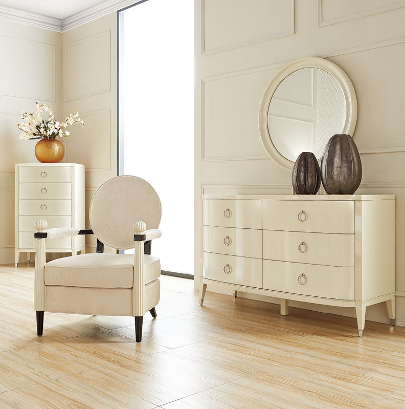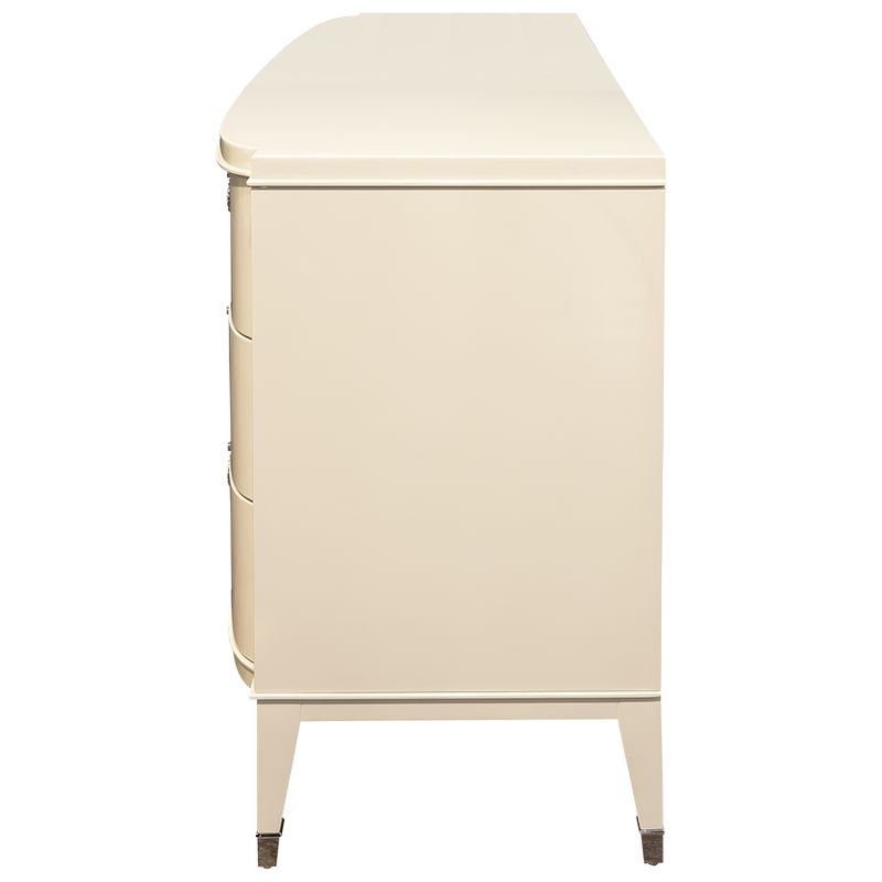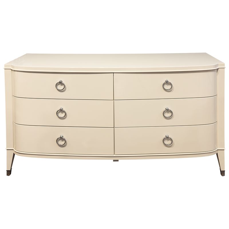 Изящный комод Modena от итальянского бренда Fratelli Barri. Комод в неоклассическом стиле, с 6-ю выдвижными ящиками. Закругленные фасады. Отделка - бежевый блестящий лак. На ножках металлические колпачки.
