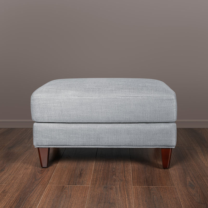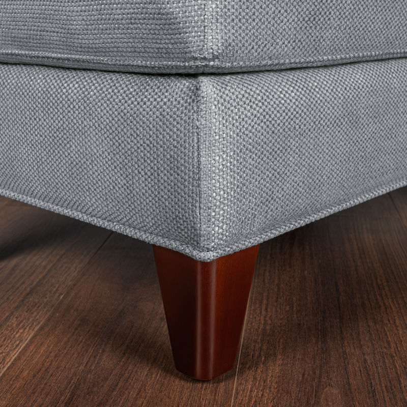 Пуф, отделка шпон махагона С, ткань серо-голубая рогожка