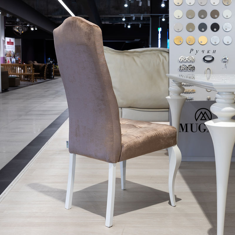 Стул выполнен в стиле ар-деко из массива корабельной сосны, поставляемой из Испании и Германии, высококачественного МДФ высокой плотности. Декорирован капитоне.