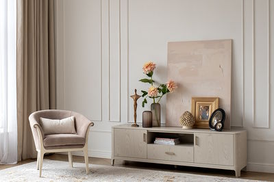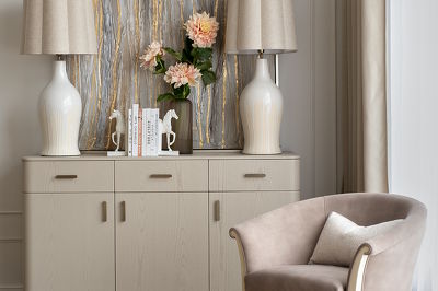 Кресло, отделка бежевый блестящий лак, ткань Finka-43A