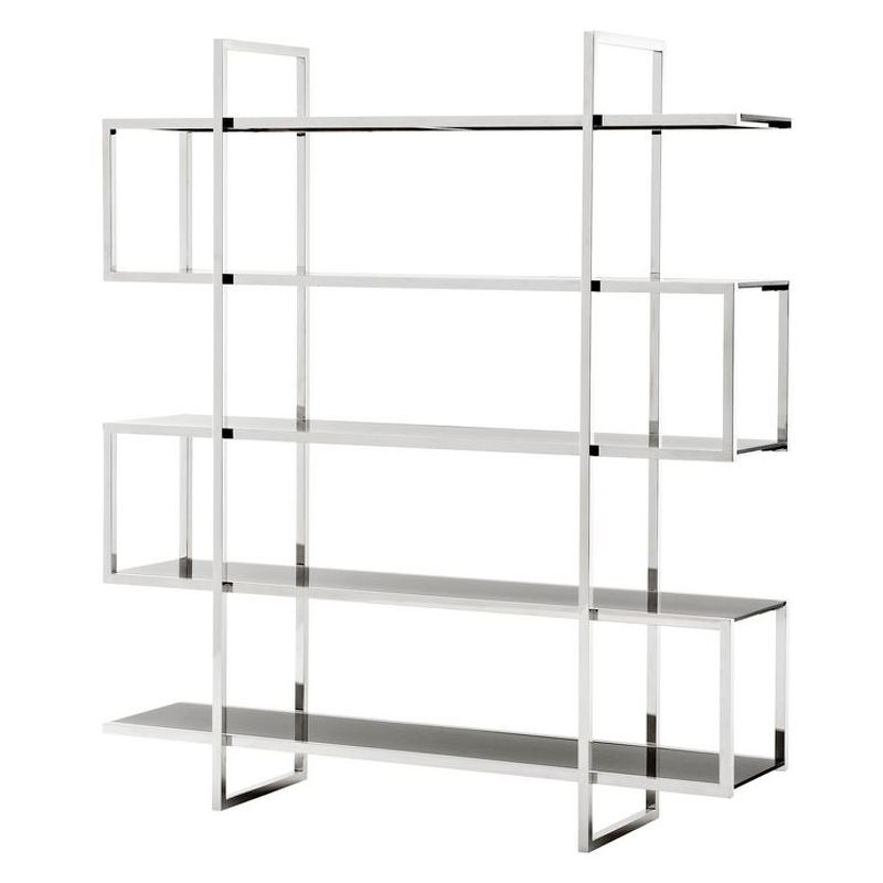 Стеллаж Soto, отделка полированная нержавеющая сталь, черное стекло