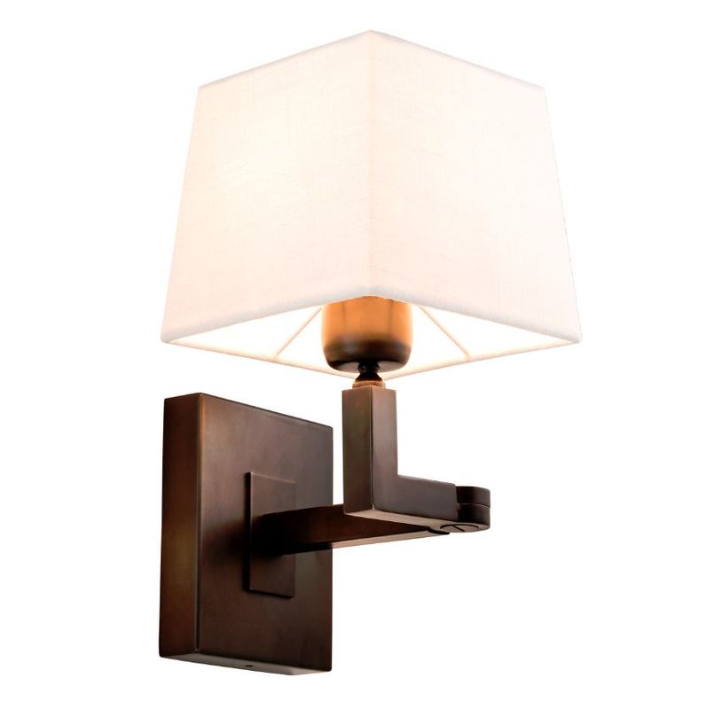 Это блестящее дизайнерское бра с бронзовой отделкой и регулируемым поворотным кронштейном сочетает в себе элегантность и практичность. Изысканный образ дополняет белый абажур из смеси хлопка и льна.