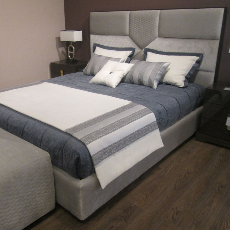 Комплект состоит из покрывала размером 240*260 см (стежка "квадрат"), пледа размером 80*240 см, 2 подушек размером 50*70 см, 2 подушек размером 40*60 см, 1 подушки размером 45*45 см.