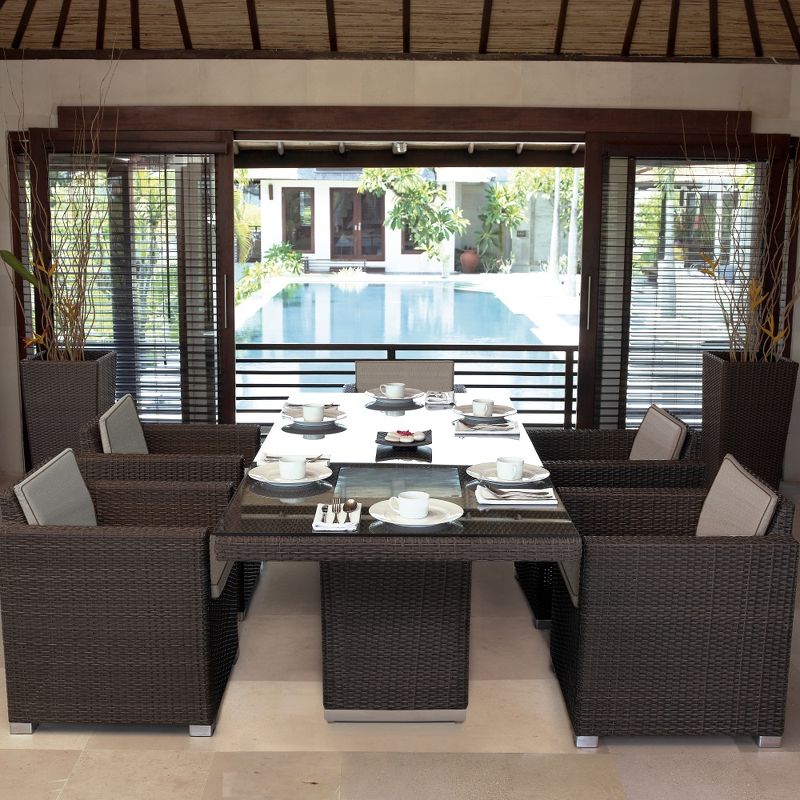 Обеденный стол Pacific, отделка искусственный ротанг кофейного цвета, стекло