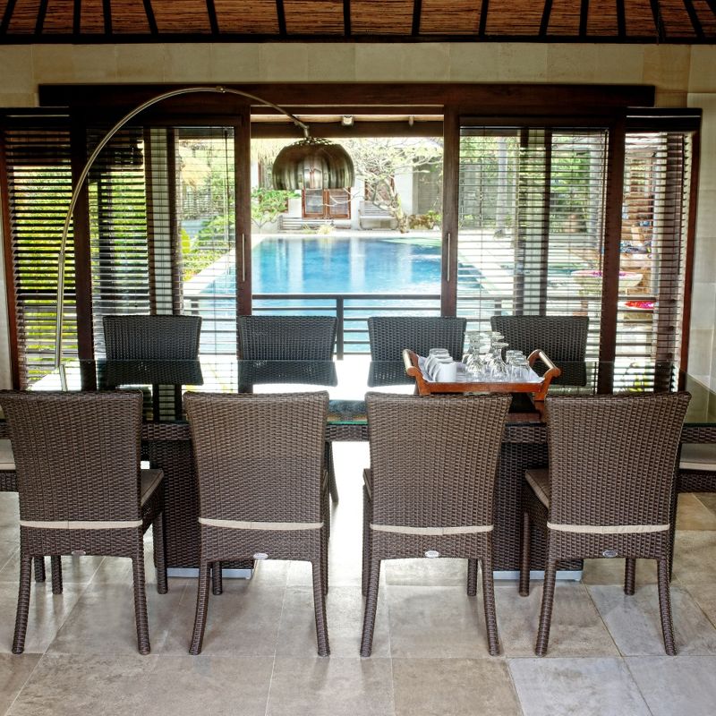 Обеденный стол Pacific, отделка искусственный ротанг кофейного цвета, стекло