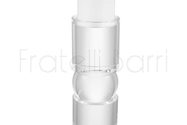 Фигурный подсвечник выполнен из прозрачного стекла.