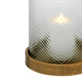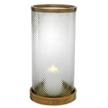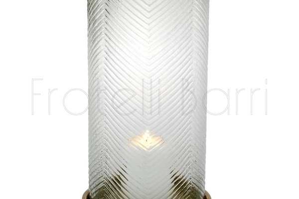 Подсвечник выполнен из латуни и прозрачного стекла ручной работы с узором.