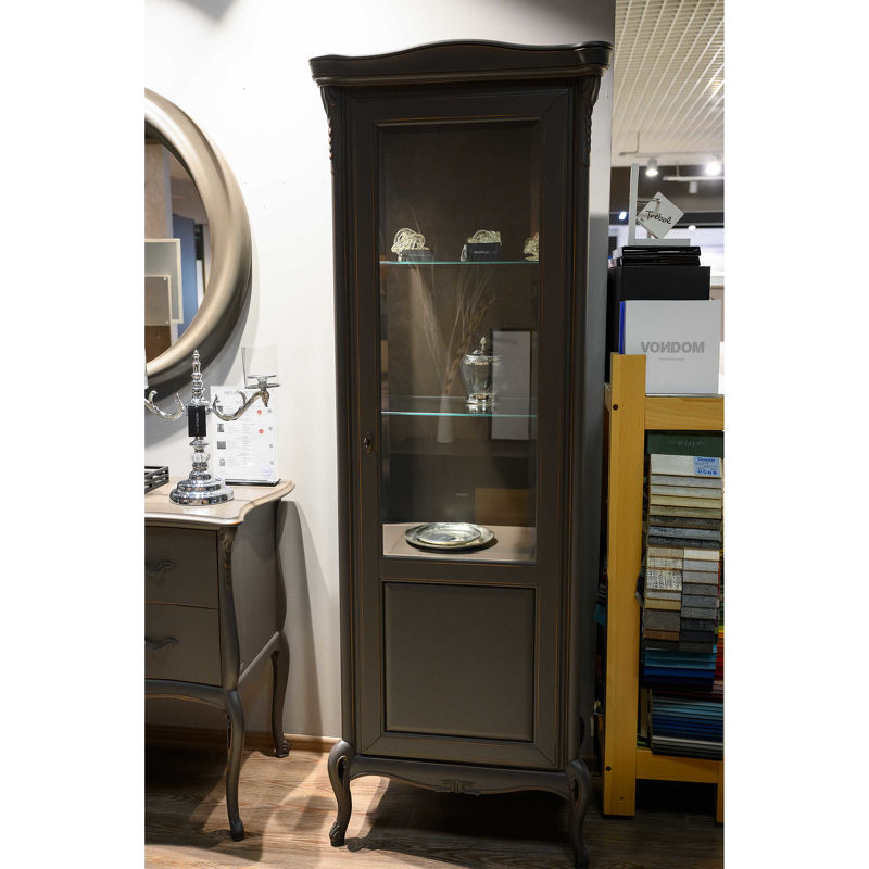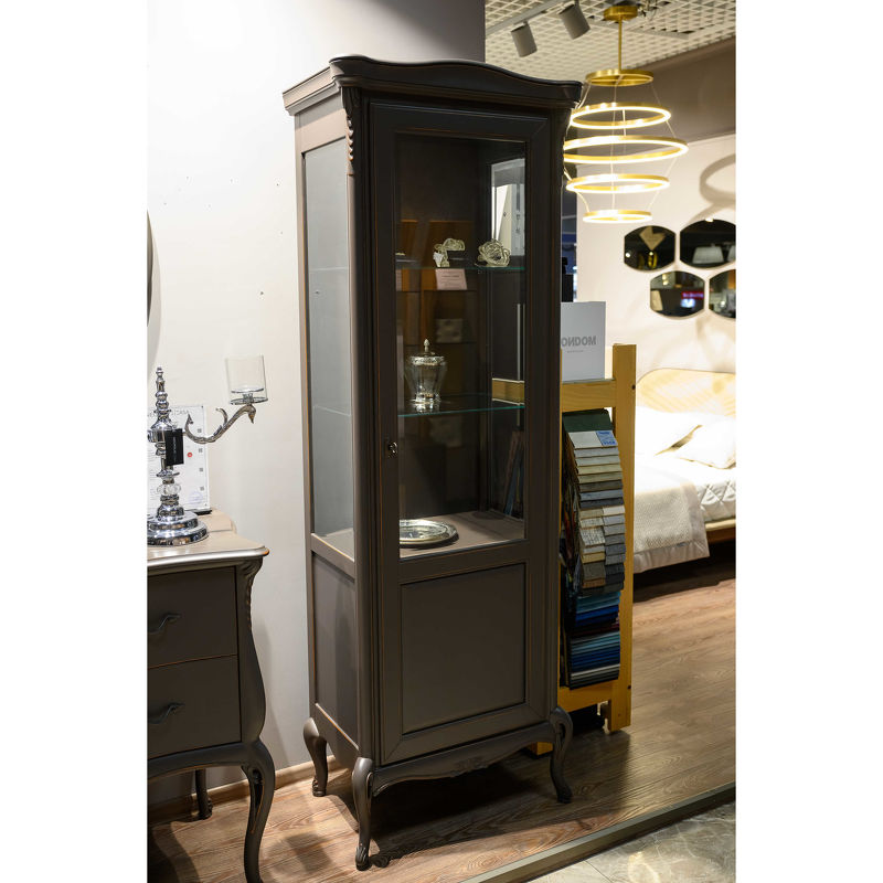 Витрина на изогнутых ножках, являющаяся частью этой коллекции, выгодно подчеркнет роскошь созданного вами интерьера. В отделке использован матовый шелковистый лак Moka. Он полностью экологичен и не имеет запаха.