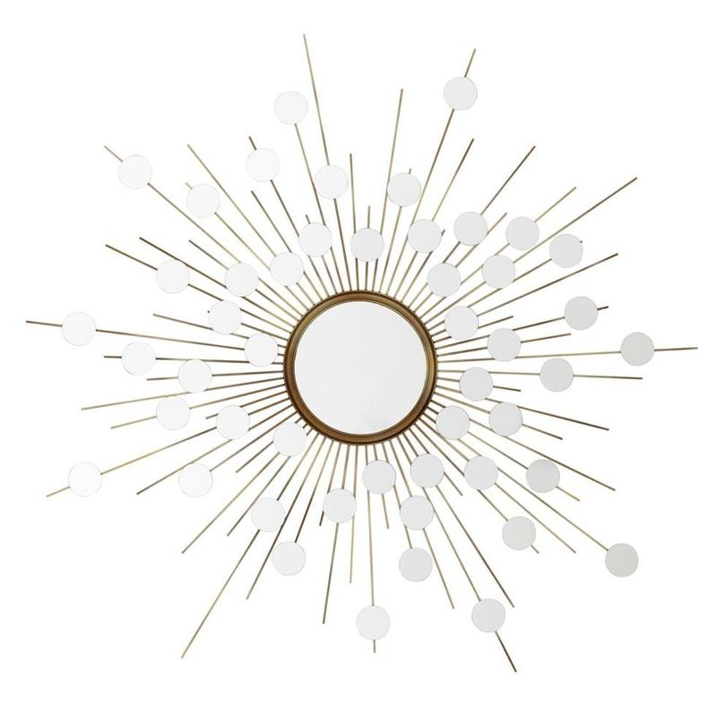 Это сияющее круглое настенное зеркало украсит ваше пространство. Золотая рама из античной латуни дополнена ярким дизайном — маленькими круглыми зеркалами, придающими зеркалу поистине ослепительный вид.