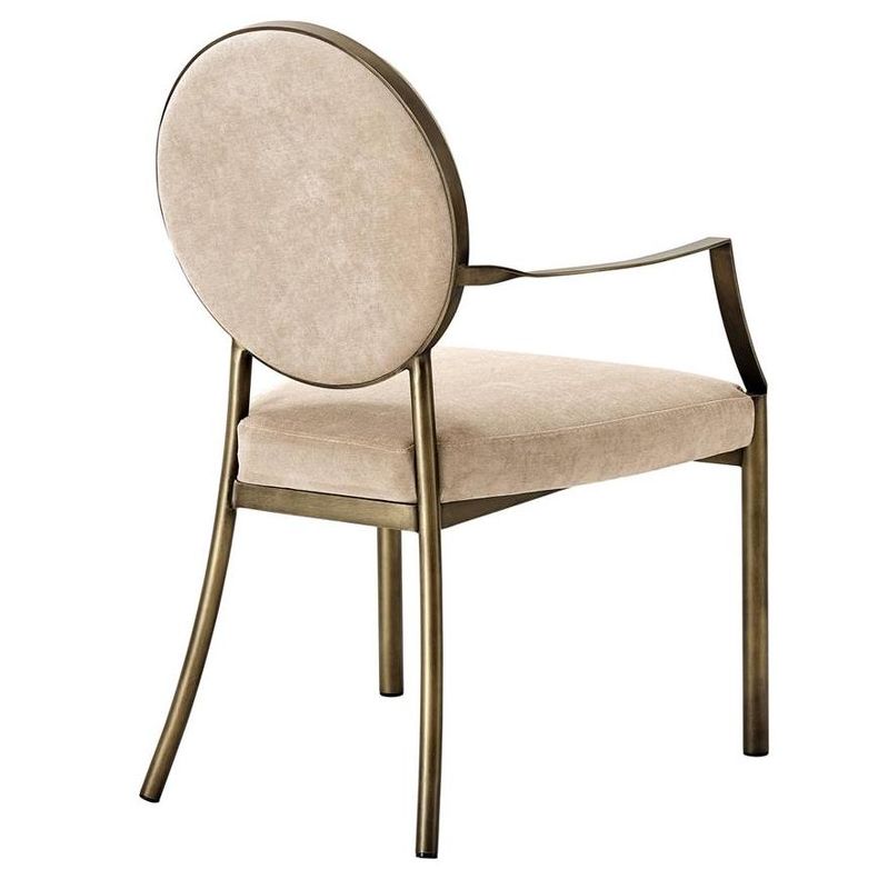 Стул с подлокотниками Scribe, отделка темная латунь, серый велюр