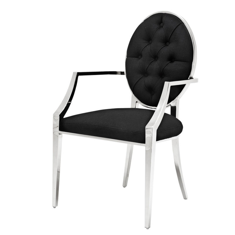 Стул с подлокотниками Tayler, отделка полированная нержавеющая сталь, ткань panama black