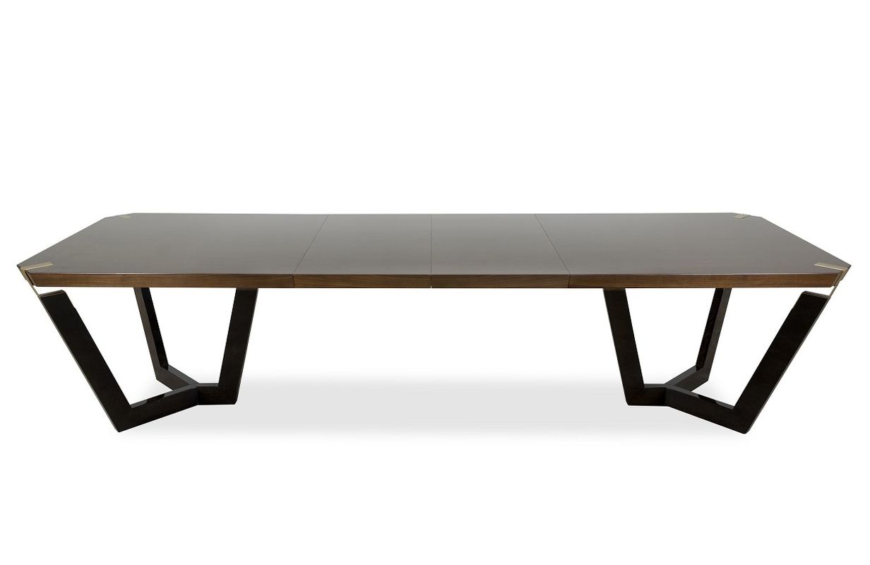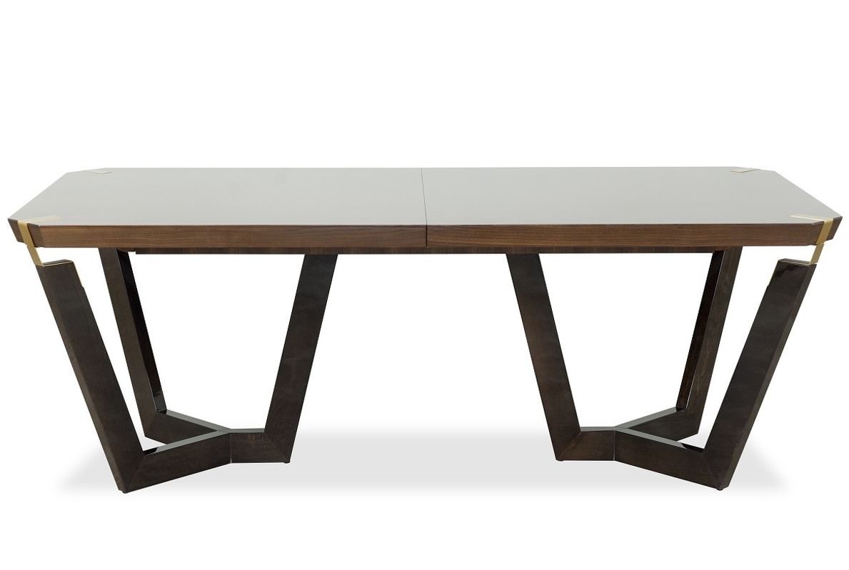 Обеденный стол раздвижной, отделка 735 глянцевый шпон ореха, 725 глянцевый шпон темного ореха, M02 латунь