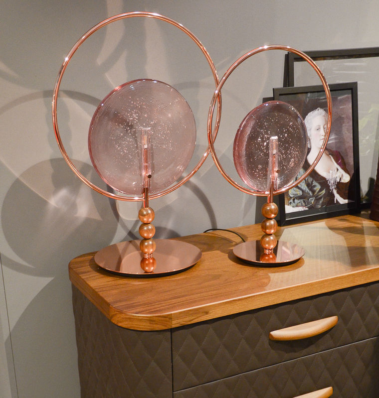 Настольная лампа Dreamy, отделка медный хром, розовое стекло, орех Canaletto