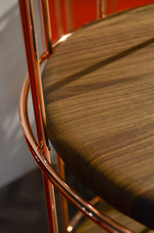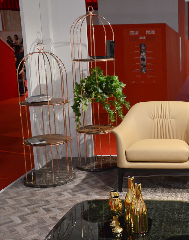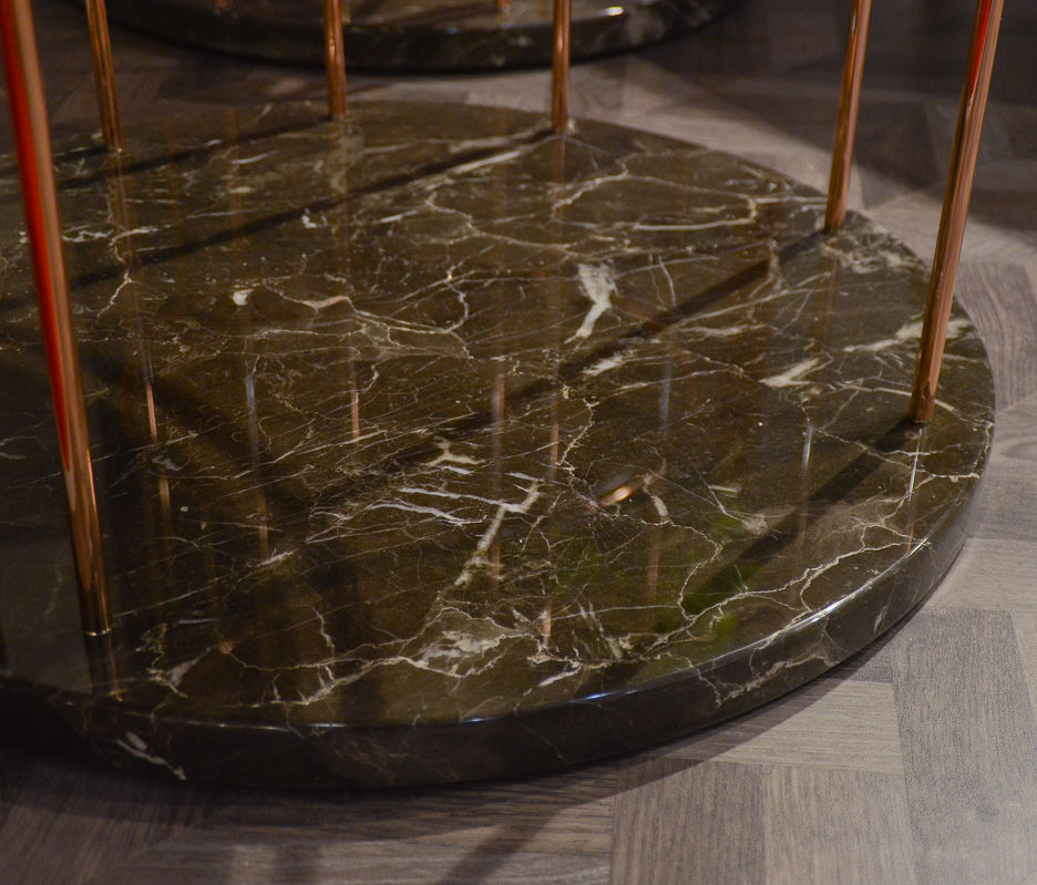 Стеллаж Tweet, отделка медь, мрамор Emperador, орех Canaletto