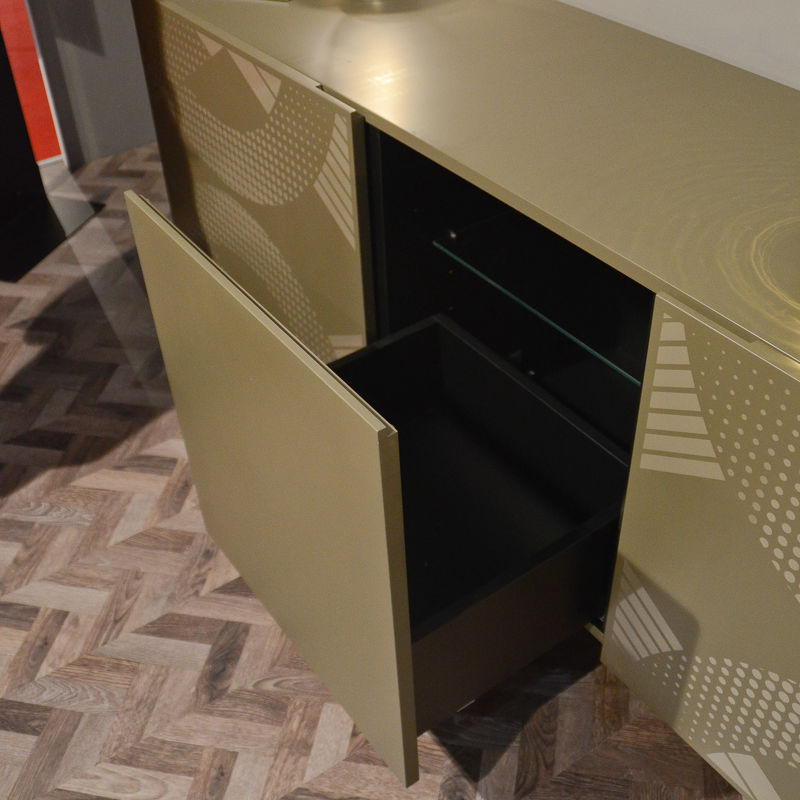 Буфет Depop, отделка матовое золото, серый лак, декор бежево-серый лак