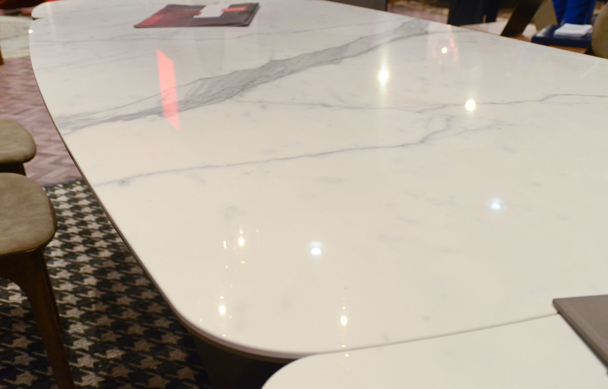 Обеденный стол Ariston раздвижной, отделка бронза, серый лак, керамогранит "под мрамор"