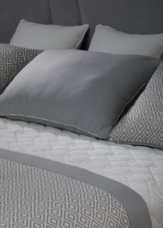 Стильное стеганое покрывало будет гармонично смотреться в вашей спальне и придаст интерьеру завершенность. Форма стежки - соты.
