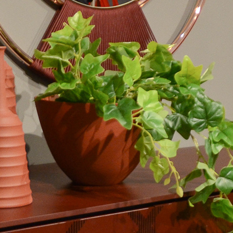 Ваза в форме пиалы выполнена в современном стиле из керамики.