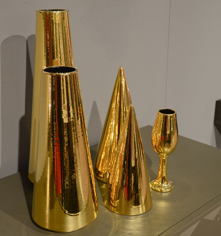 Декоративный элемент в виде конуса выполнен в современном стиле из керамики.