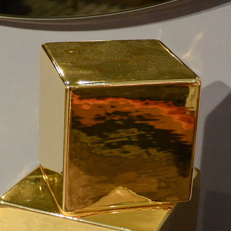 Декоративный элемент в виде куба выполнен в современном стиле из керамики.