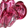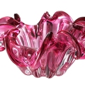 Низкая ваза с объемным фигурным краем выполнена вручную из выдувного стекла.