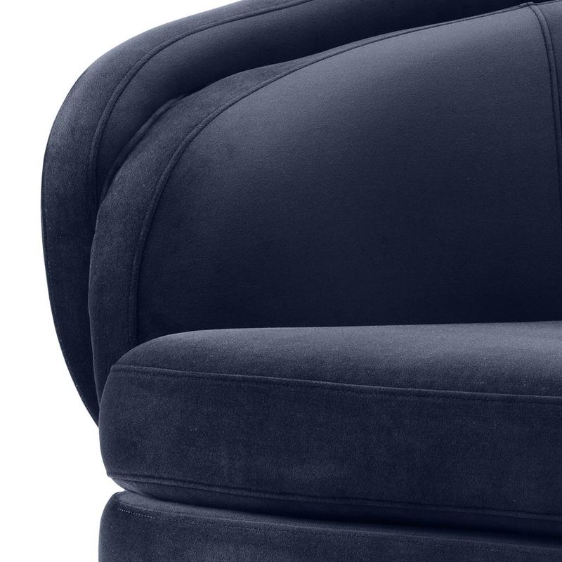 Роскошное кресло Orion от Eichholtz в стиле ар-деко. Модель на тонких ножках из брашированной латуни, выполнена на каркасе из массива сосны и многослойной древесины. Обивка выполнена в оттенке полуночный синий.