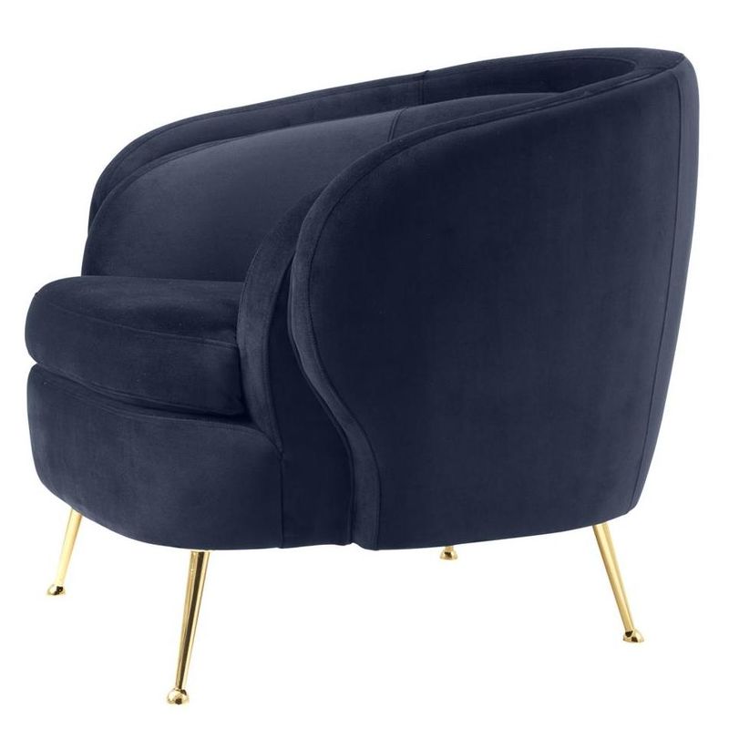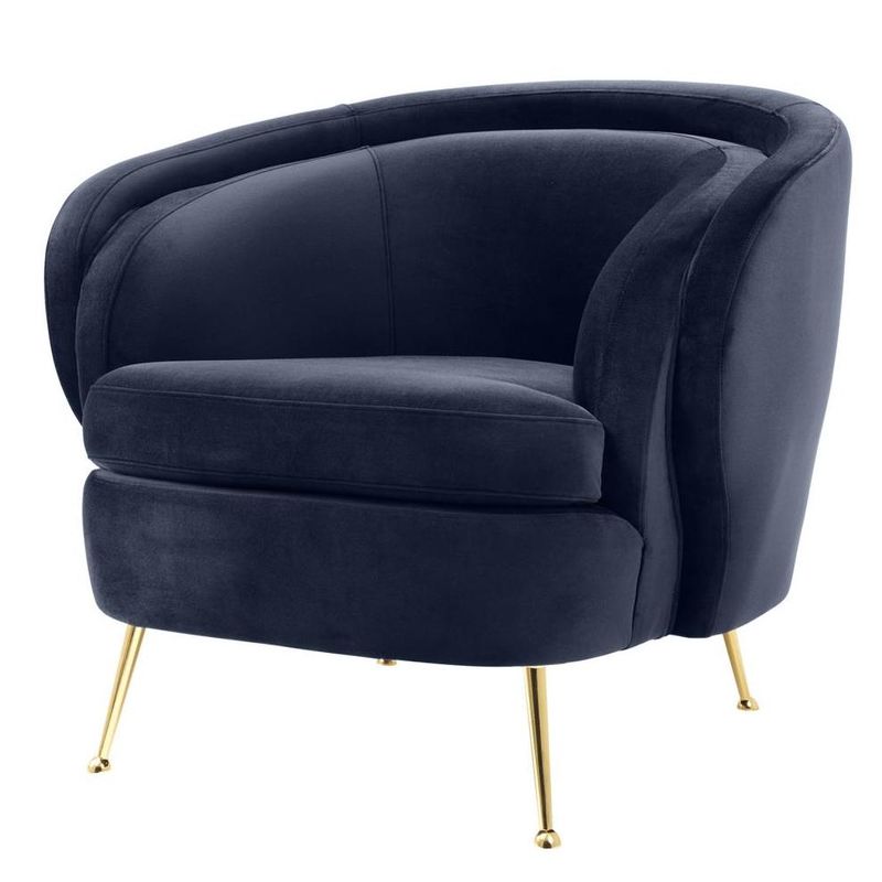 Кресло Orion, отделка латунь, глубокий синий велюр savona