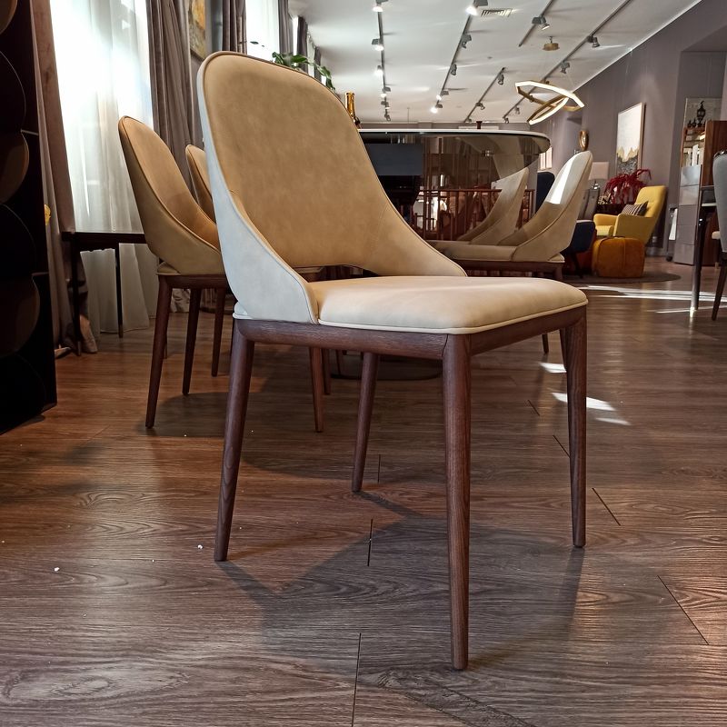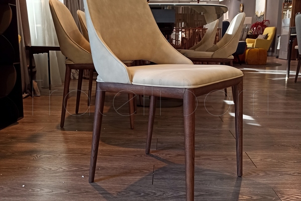 Стул с низкой скругленной спинкой выполнен в современном стиле на деревянном каркасе. Обтянут эконубуком.