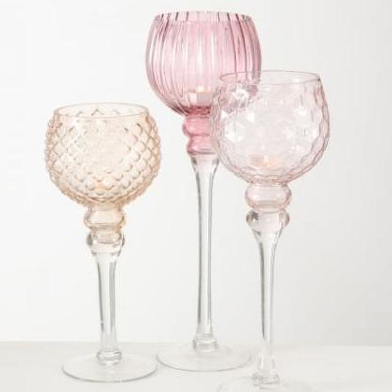 Подсвечник Manou (3 штуки), отделка розовое стекло