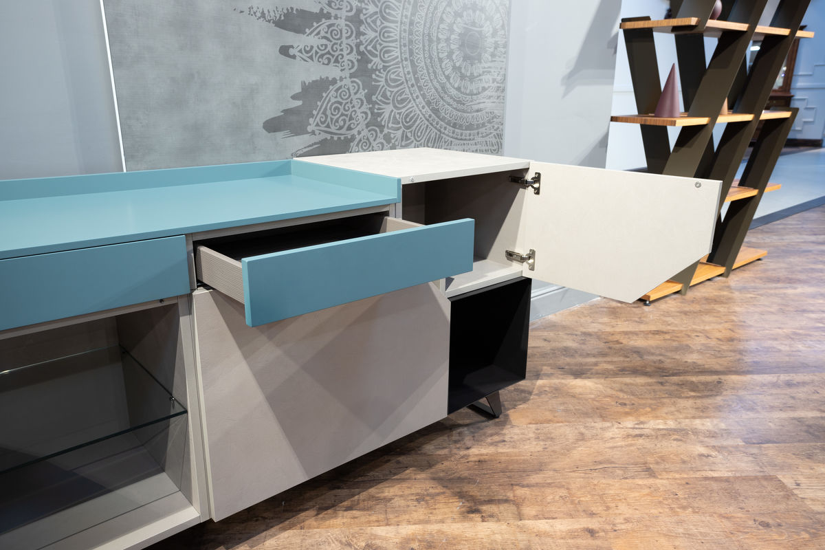 Буфет Remix X03, отделка серый рельефный лак, матовый лак anthracite 160, матовый лак 159 Sage