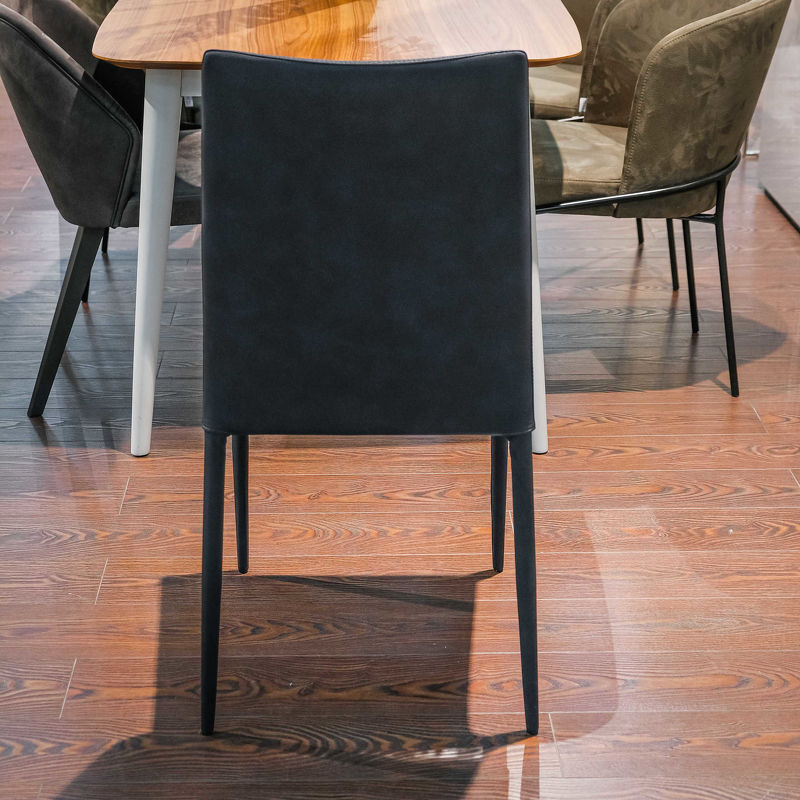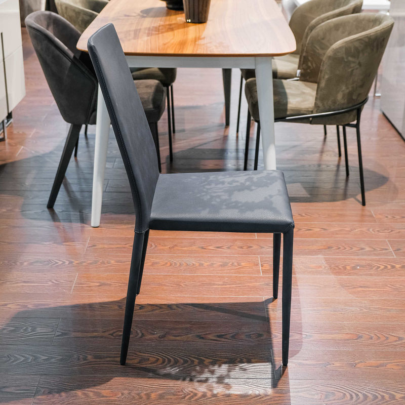 Стул на тонких прямых ножках выполнен в современном стиле. Металлические ножки дополняет каркас из ДСП. Стул полностью обтянут экокожей, чехлы не съемные. Наполнитель - пенополиуретан.
