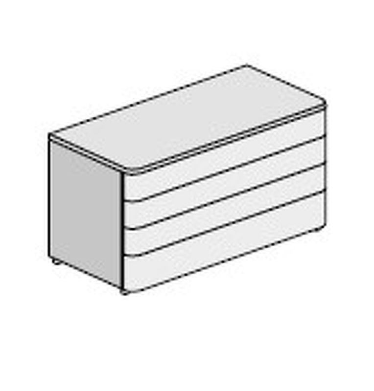 Комод выполнен в современном стиле из ДСП. Оснащен четырьмя ящиками со скругленными углами.