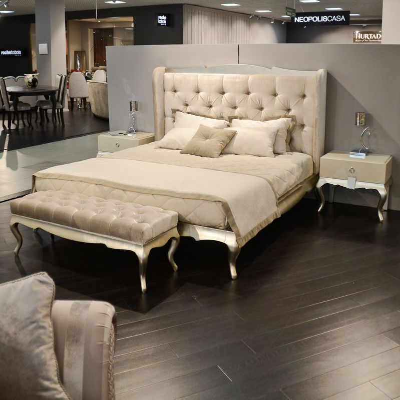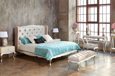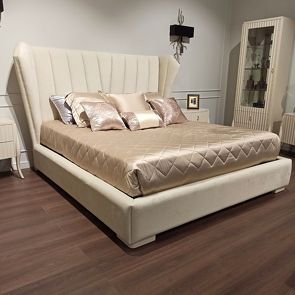 Классическая двуспальная кровать выполнена на вдохновении барокко и Венецией. Изголовье декорировано стежкой «капитоне», которая придает особый шарм этой модели. Обивка из велюра бархатистая, очень приятная на ощупь.