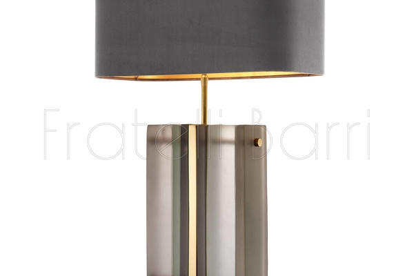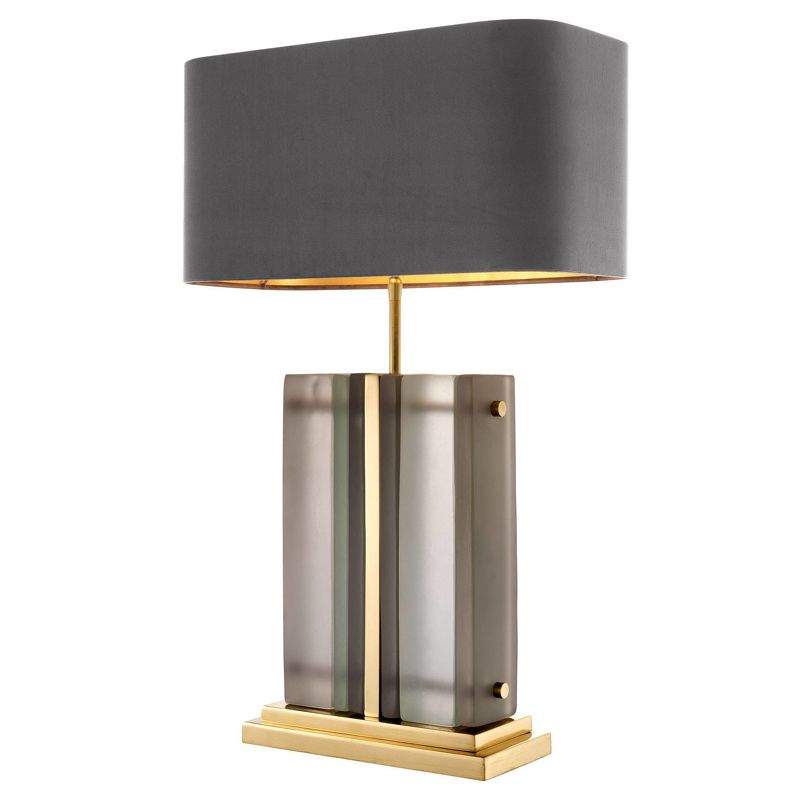 Благодаря прямоугольному латунному основанию с элементами из матового стекла, настольная лампа Solana от Eichholtz придаст интерьеру вашего дома изысканность и шарм. Серый бархатный абажур с золотой внутренней отделкой создает прекрасный теплый эффект освещения.