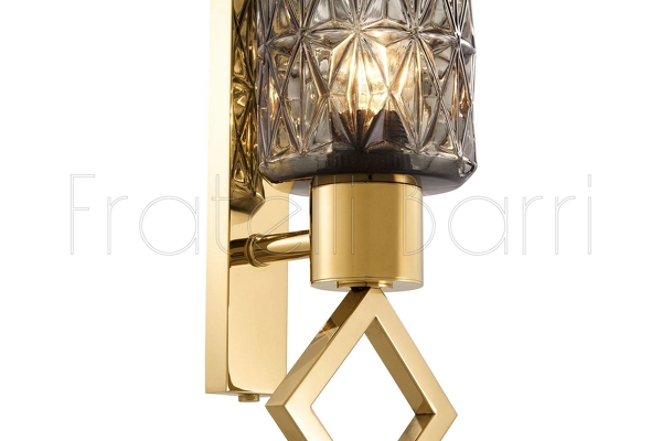 Бра Touch от Eichholtz на вытянутом основании выполнено в стиле ар-деко. Плафон из рельефного тонированного стекла на металлическом держателе привлекает внимание и создает яркий акцент в интерьере.