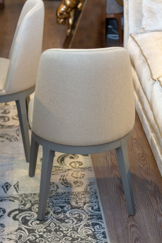 Стул на прямых ножках выполнен в стиле ар-деко. Узкая, слегка изогнутая спинка подчеркивает изящное сиденье с кантом.