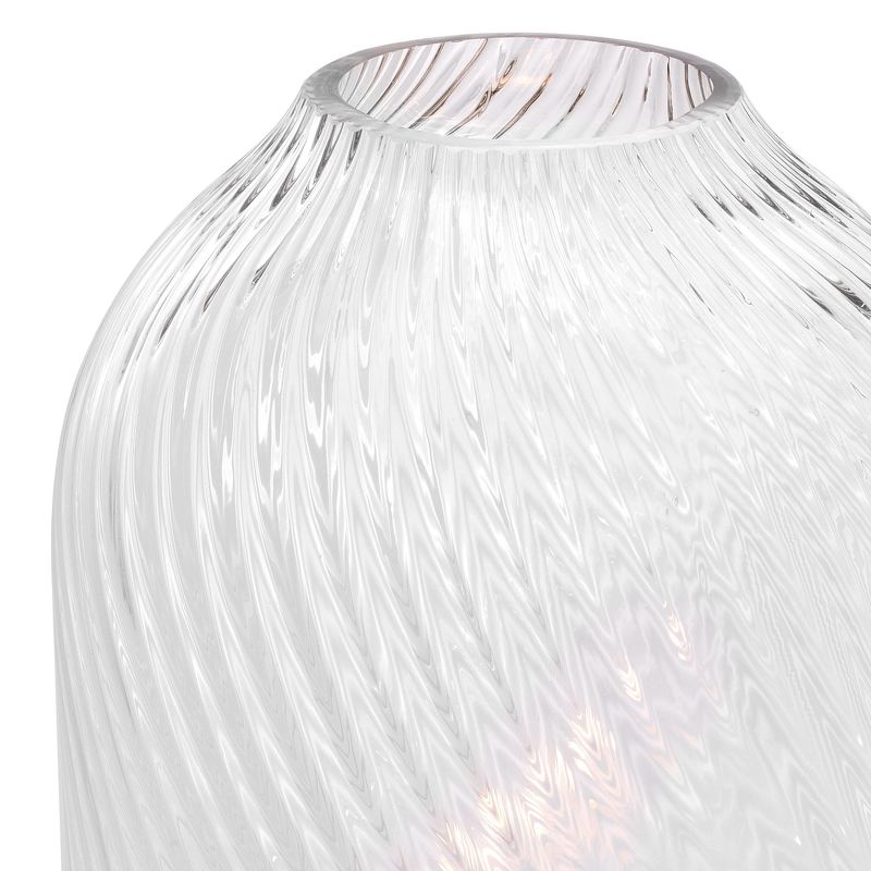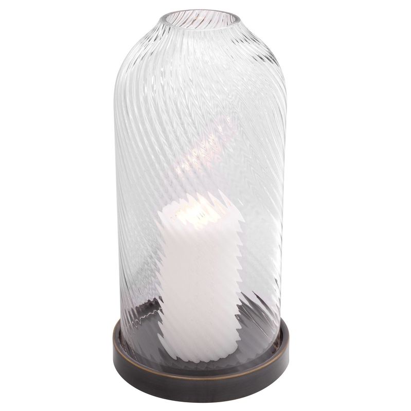 Круглый подсвечник на латунном основании дополнен высоким плафоном из стекла ручной работы, декорирован витым узором. Рассчитан на одну свечу.