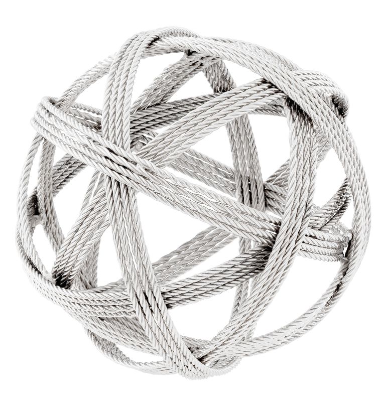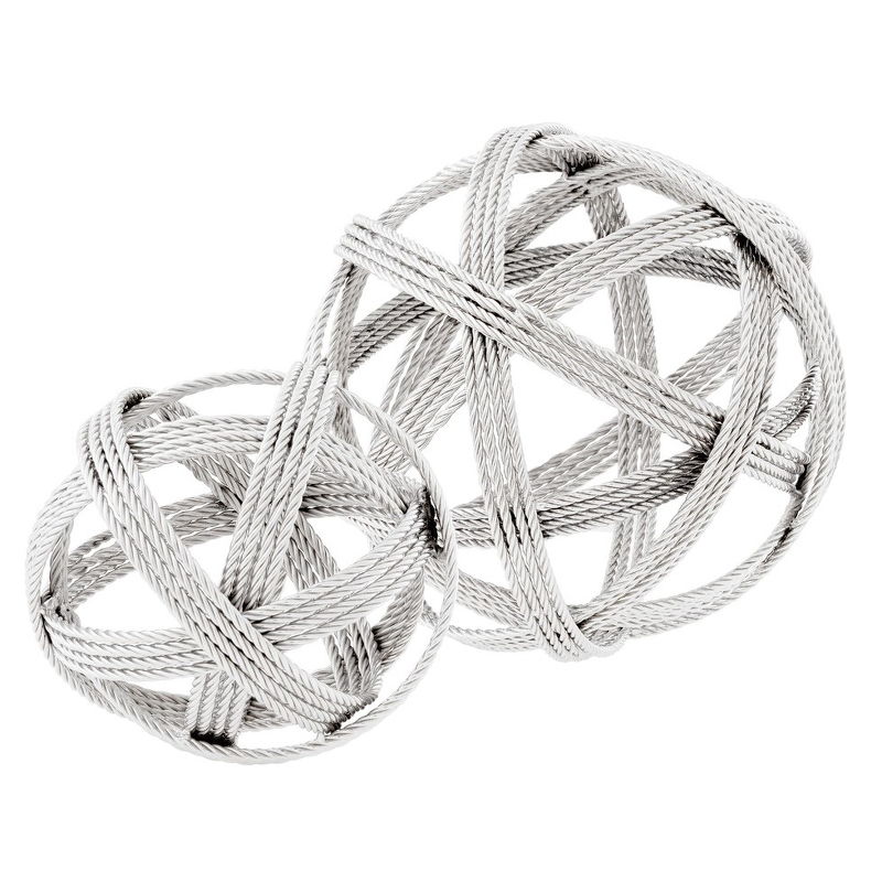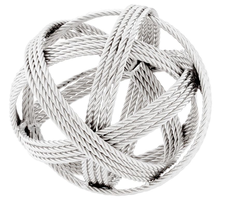 Декоративный элемент в виде шара из плетеных витых лент выполнен из нержавеющей стали. В комплекте два шара разного диаметра.
