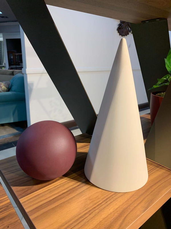Декоративный элемент в виде конуса выполнен в современном стиле из керамики.
