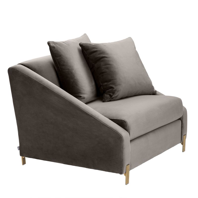 Кресло Candice, отделка матовая латунь, серый велюр Savona