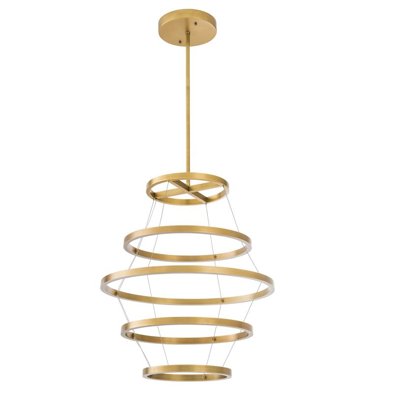 Состоящая из 5-кольцевого светильника с отделкой из античной латуни и встроенных светодиодных ламп, она оживит ваш интерьер кругами света. Используется со светодиодным регулятором освещенности.