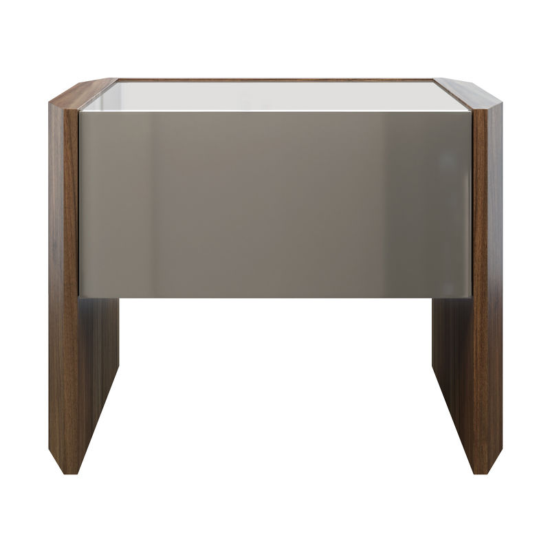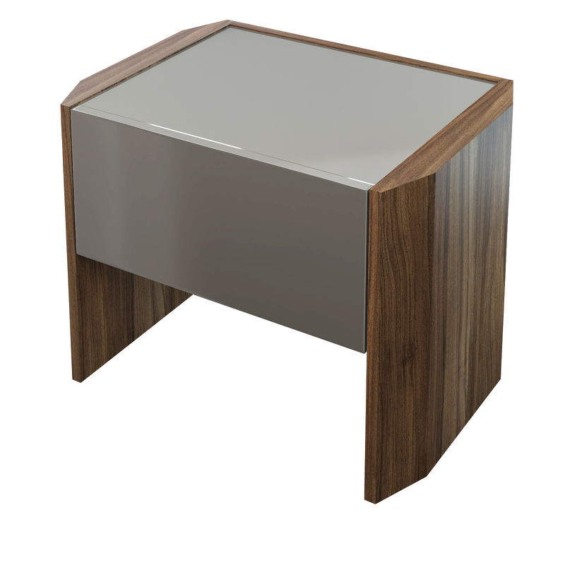 Прикроватная тумбочка, отделка шпон ореха F, серый глянцевый лак