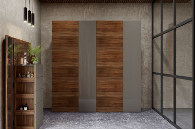 Комбинированный дизайн из глянцевого лака и древесины в шпоне натурального ореха. Высококачественная сертифицированная МДФ высокой плотности.