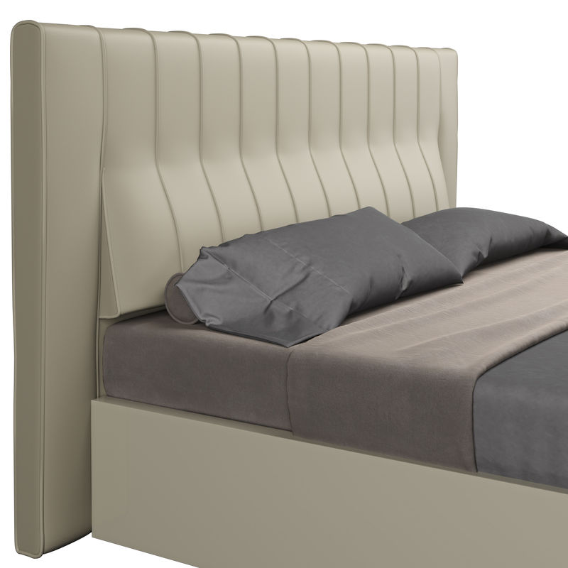 Фигурное изголовье имеет строгий силуэт и декорировано вертикальным кантом. База кровати имеет закругленные углы — они безопасны и удобны.